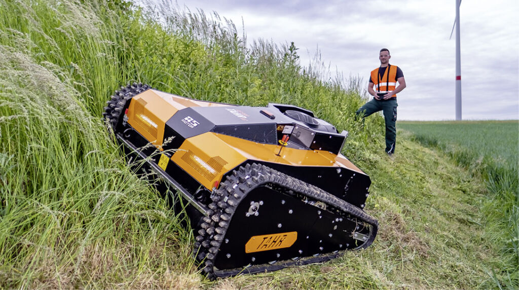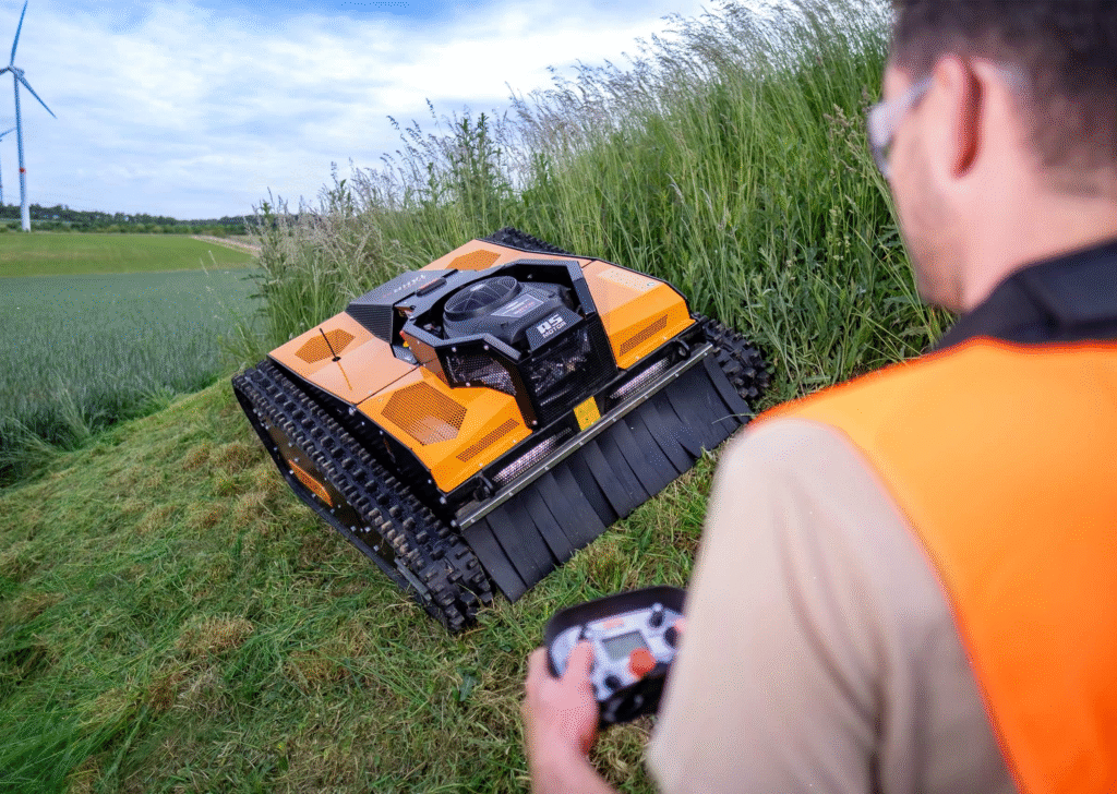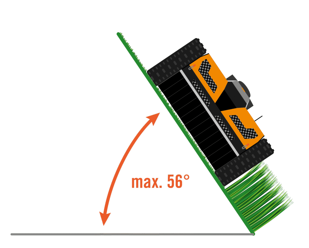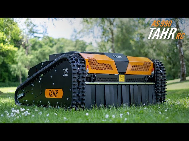 La AS 990 TAHR RC est une tondeuse débroussailleuse radiocommandée à chenilles, conçue pour les pros qui entretiennent des terrains difficiles et en pente. C’est une machine robuste, fiable et particulièrement bien adaptée aux espaces verts, bords de routes, terrains en forte déclivité ou zones accidentées. Cette débroussailleuse radiocommandée est conçue pour des pentes jusqu’à 56°. Le carter de coupe ouvert des deux côtés permet une tonte propre en marche avant et en marche arrière. Aucun temps perdu à manœuvrer, aucune marche inutile. L’herbe coupée est déposée uniformément et se décompose très rapidement, parfait pour les broussailles denses et les herbes hautes jusqu’à 1,5 mètre.